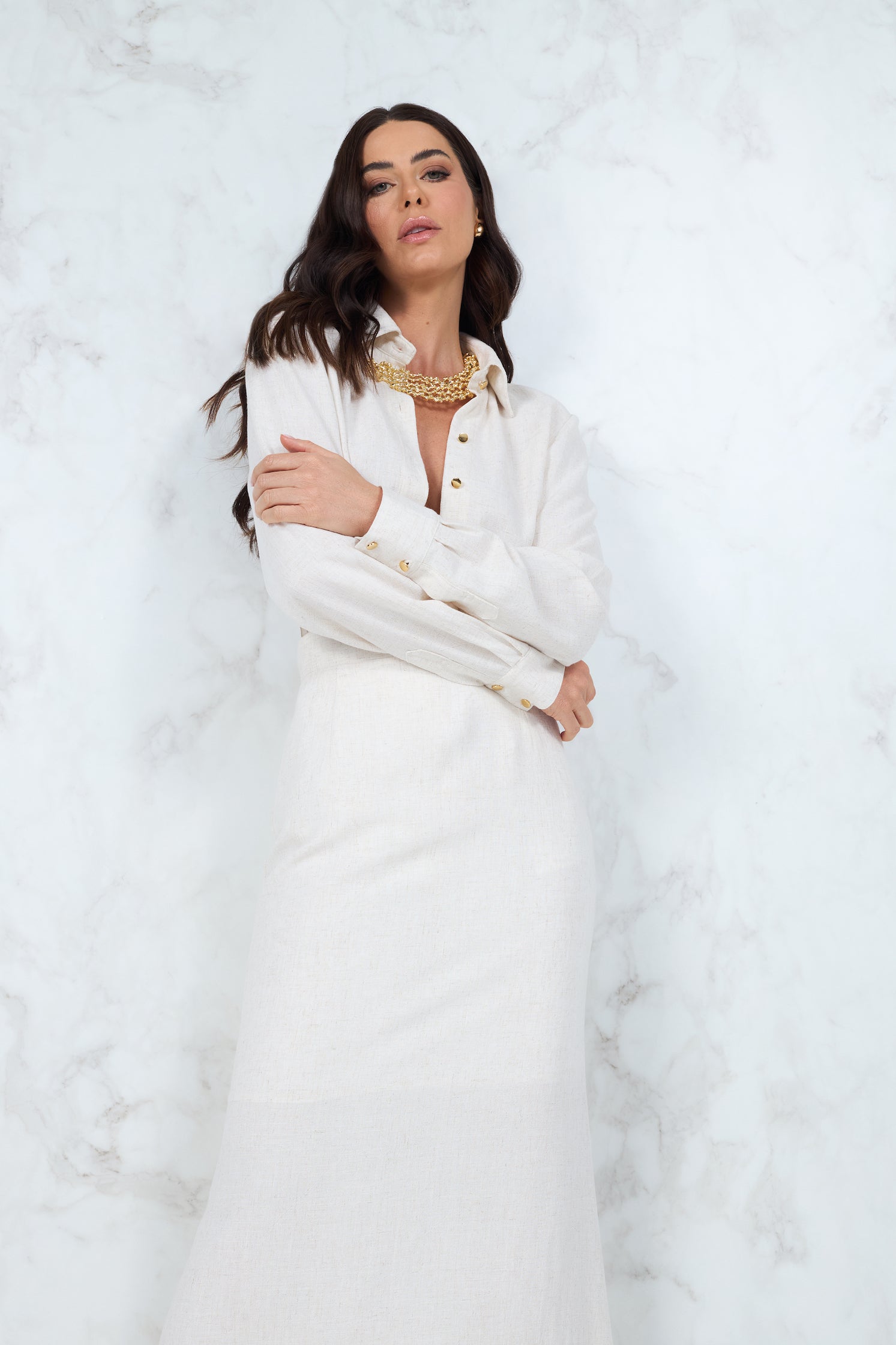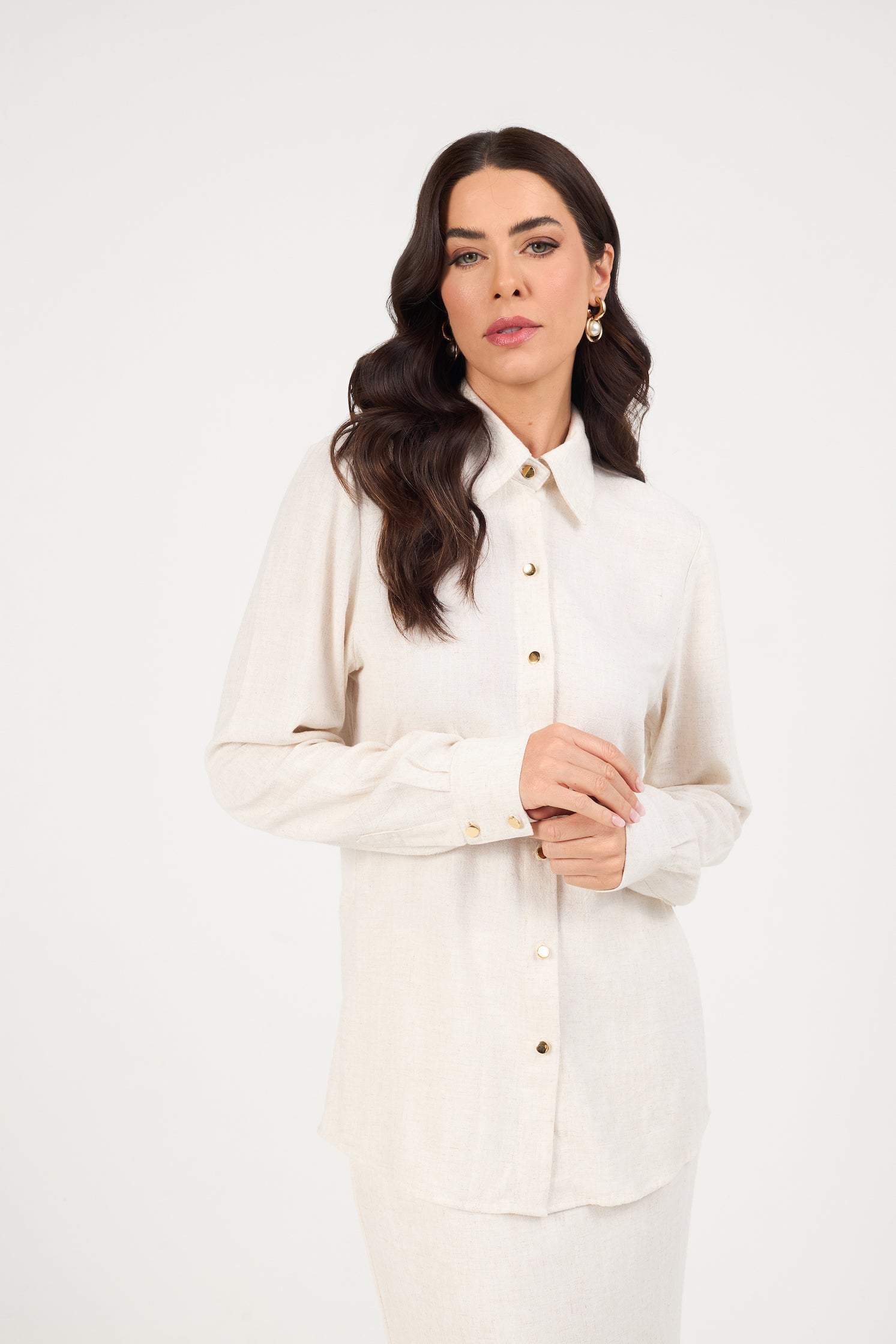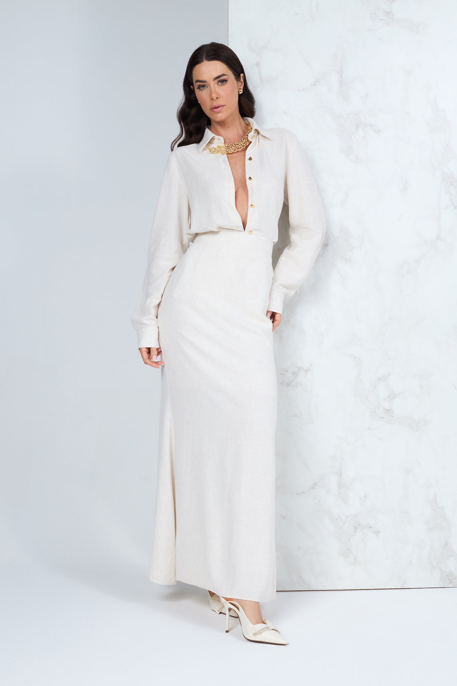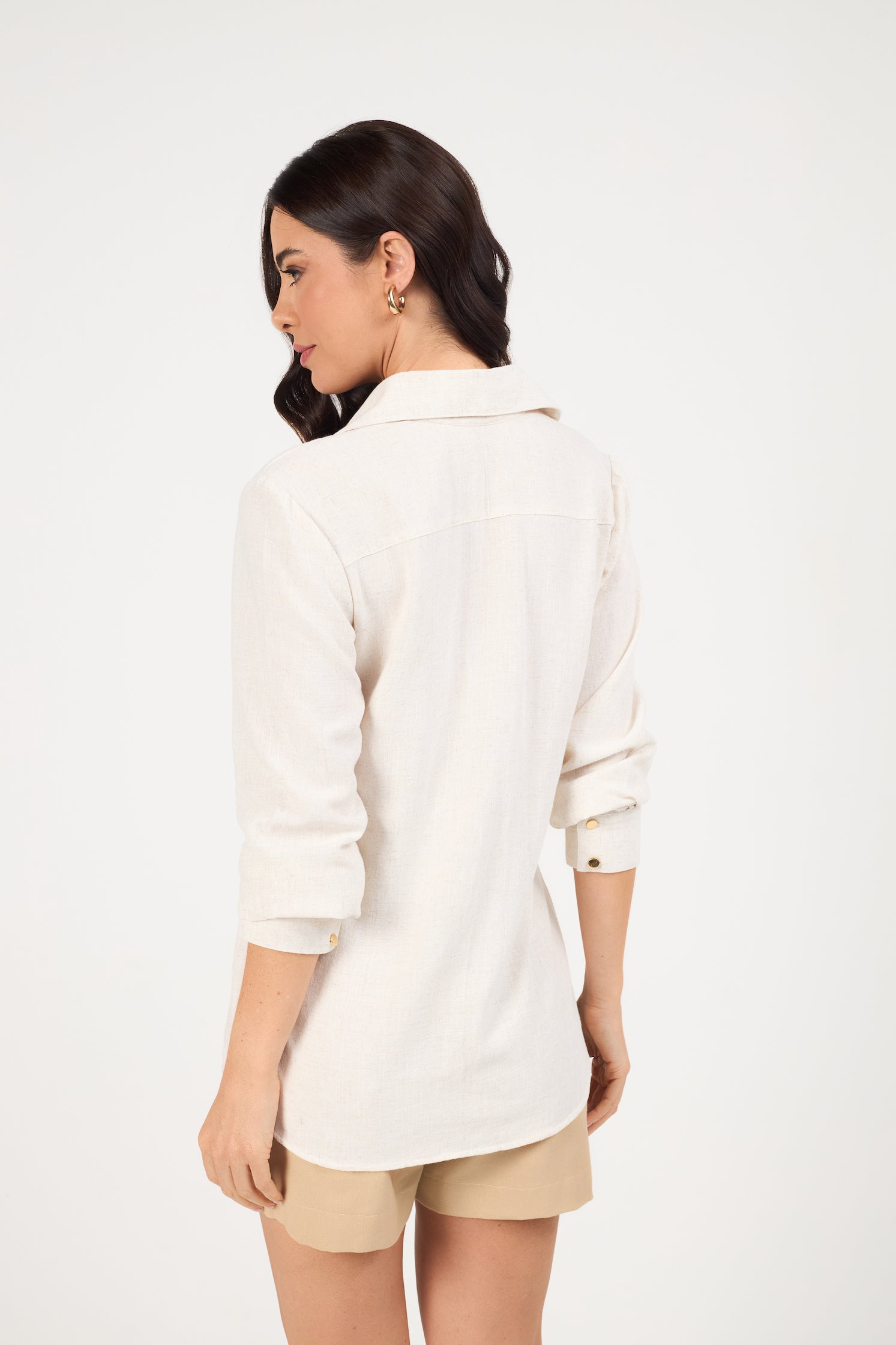 Uma peça atemporal e sofisticada, desenvolvida em linho misto com viscose, que garante leveza, conforto e caimento impecável. Sua modelagem ampla valoriza diferentes tipos de corpo, trazendo elegância sem abrir mão da versatilidade.