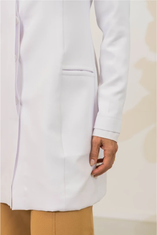 Com modelagem de alfaiataria impecável, ele foi pensado para mulheres que desejam transmitir autoridade com suavidade e estilo.